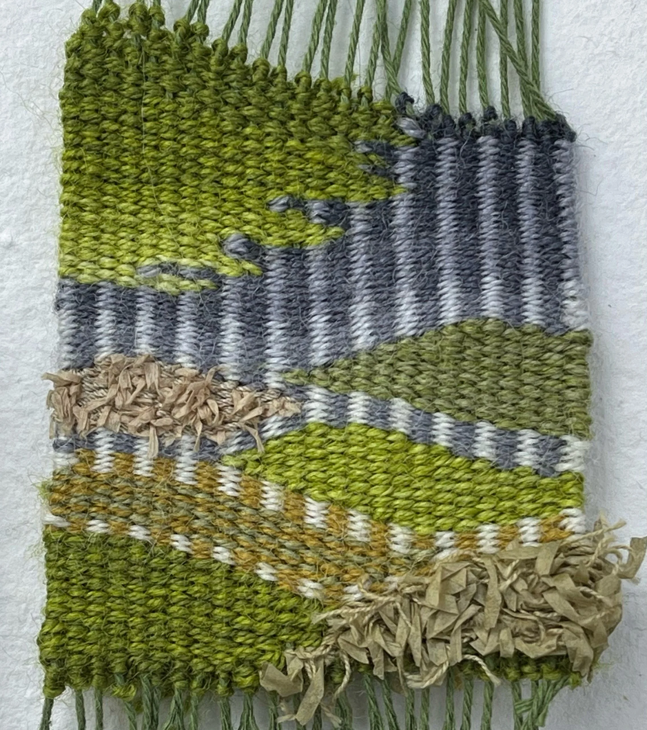 Anita is a textile and mixed media artist and the current focus of her practice is tapestry weaving. A background in zoology informs a fascination with biodiversity and the fragile balance inherent in the natural world. Her connection to nature is through a sense of place, particularly the fauna and flora rich nature reserves in her locale. These are significantly personal places, familiar and comforting in an era of climate anxiety. She aims to distil their essence in her art.