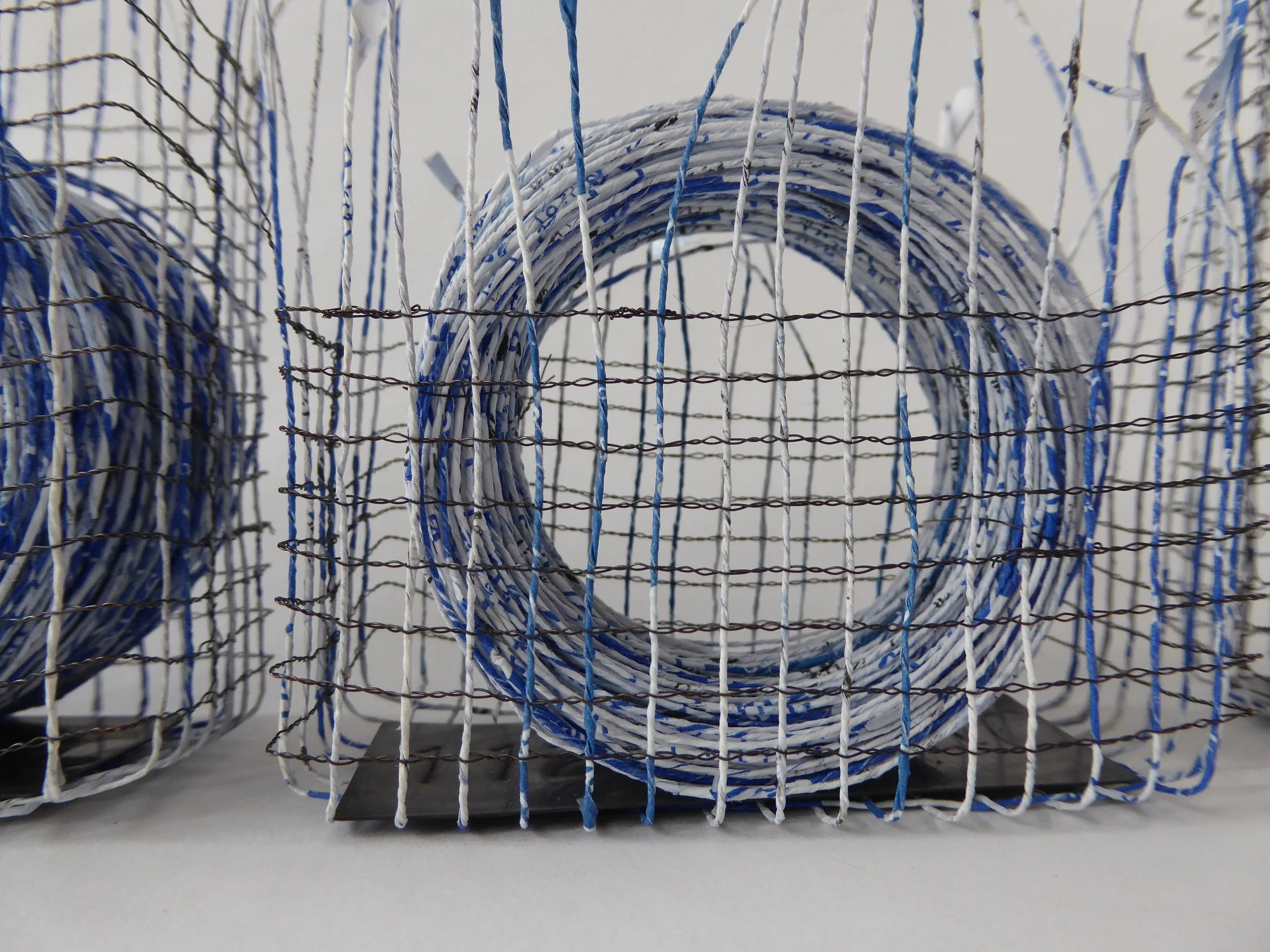 Research and planning are central to Anne’s process. She has a particular focus on the historical aspects of textile construction and skills that are no longer commonly practised, drawing on her background as a textile conservator. Anne uses both traditional techniques and new methods to achieve specific results. While she works with materials related to her current interests, she frequently uses paper, metal, graphite, and found objects.