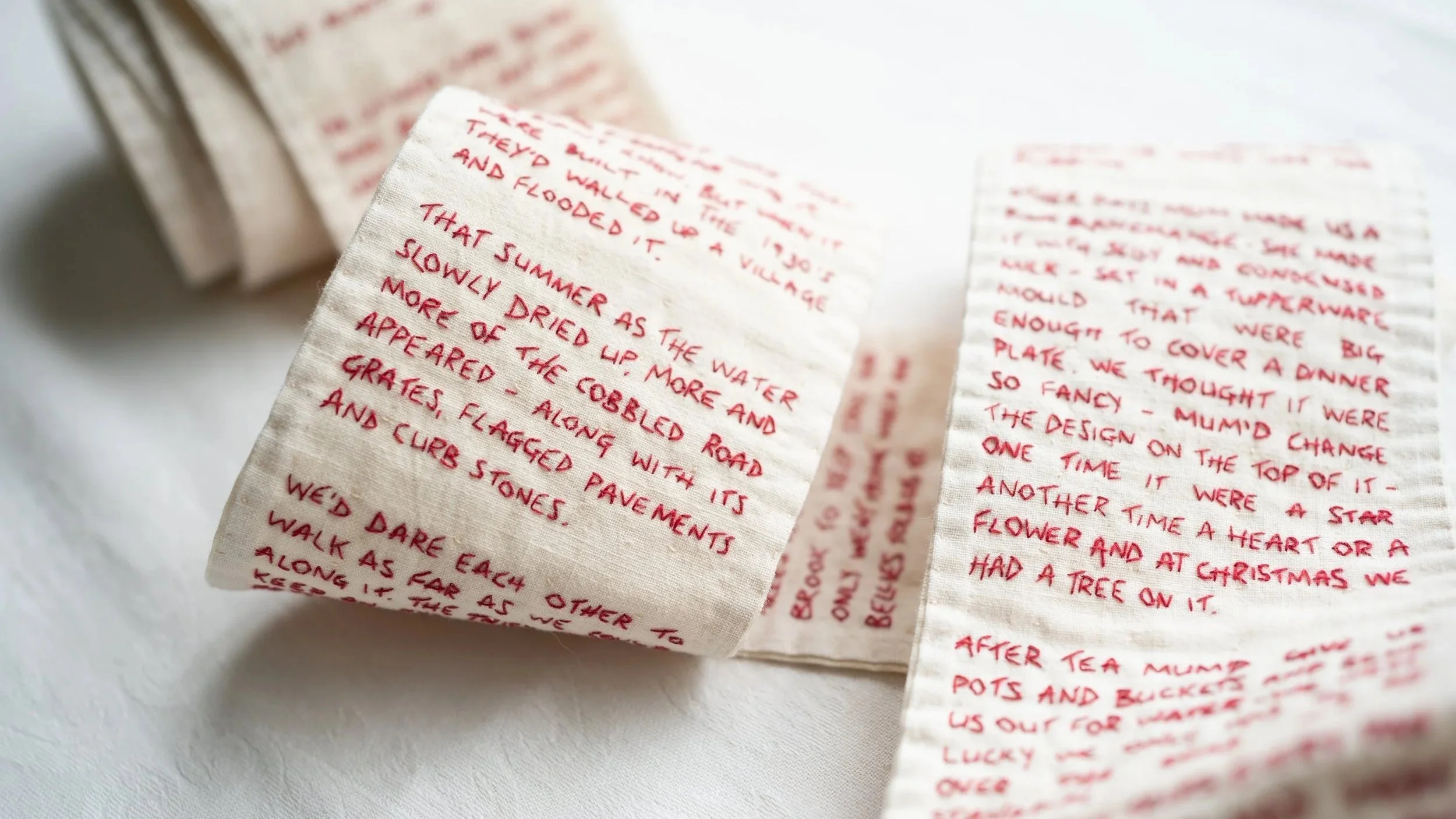 Catherine’s creative practice harnesses the use of text and narrative to bring to life memories of her childhood, her adult life, and Lancashire's social history. She first composes the narrative in the form of short sentences, snippets of speech or an essence of a meaning, and then shapes these into a final design.
