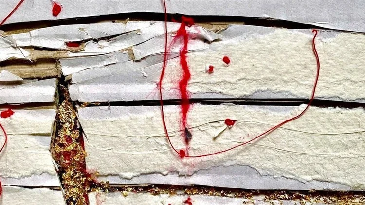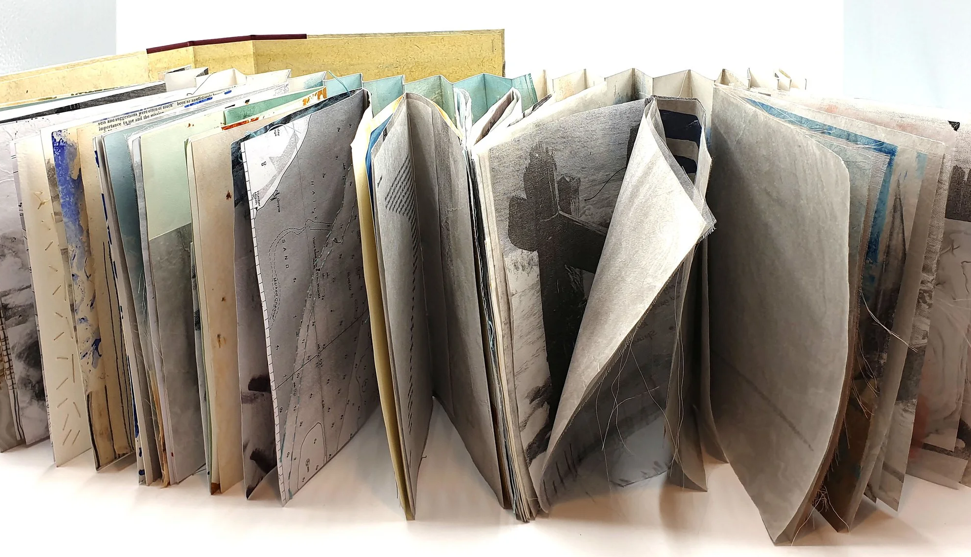 Her work is in the Printmakers’ Council collection at Scarborough Museum, and the V&A’s textile collection (collaborative artwork: Sewn Antidote 2020), and frequently exhibits in group exhibitions throughout Great Britain. Emotional attachment drives Patti’s work. She records her personal narrative and research in notebooks, often focusing on Spurn Point's landscape and history. After her daughter suffered brain injury and became blind from meningitis, Patti found poetry and stitching helpful in processing the trauma. She works across media—wall hangings, textile and mixed media books, 3D structures, always seeking a correspondence between the subject matter, its underpinning philosophy, and the form of the material.