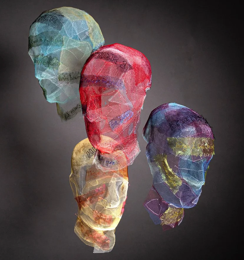 Lynne’s work explores her fascination with issues around autobiographical memory-loss and identity, a preoccupation which stems from experiencing the symptoms of Aphantasia (the lack of a mind’s eye). She is interested in the role visual recall plays in the maintenance of our sense of self and in our relationships with friends and family. Her artwork probes the fractures between perception and stored memory, considering the difference between the knowledge that events have occurred, and genuine recall. For many years, Lynne has kept sketchbooks as visual diaries, pinning down the details of her lived experience through onsite drawing. She uses her textiles to communicate ways in which Aphantasia impacts her connection with both this ongoing present and her fast-fading past.