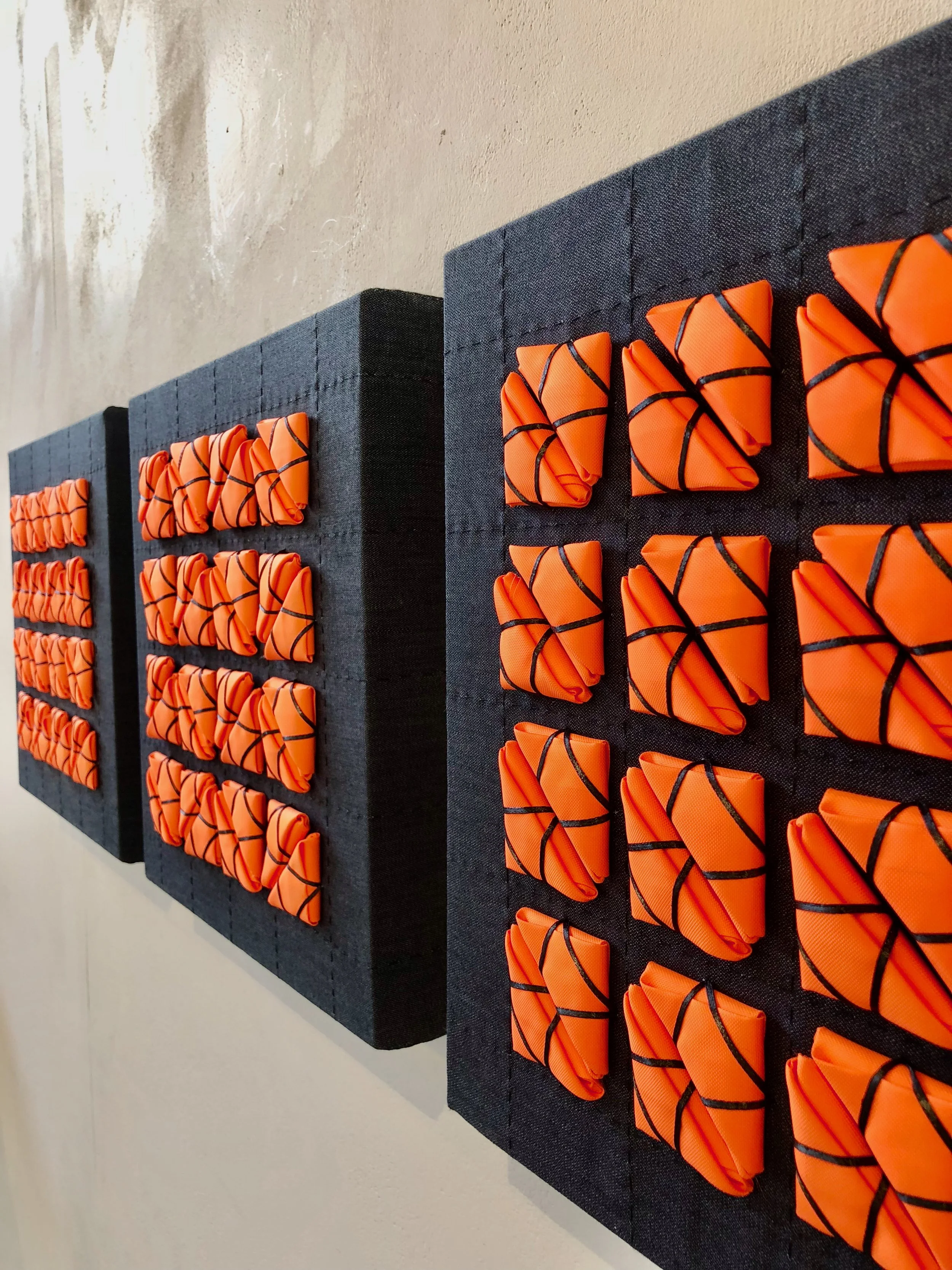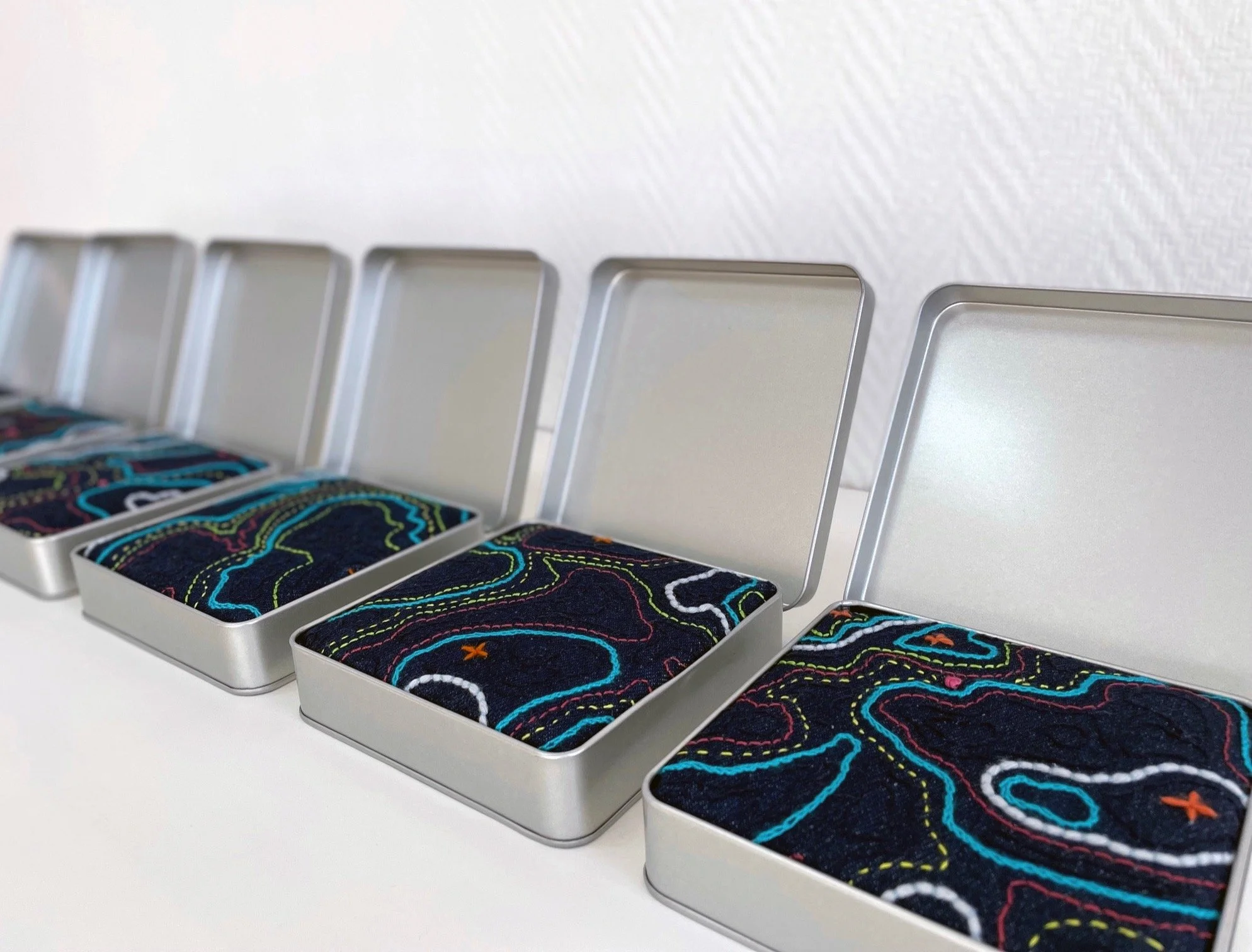 Tansy’s love of hand stitch, texture, geometry, and symmetry are all evident in her work. With her magpie-like hoarding of offcuts and haberdashery, Tansy has a seemingly never-ending pick & mix of inspiration for her work.